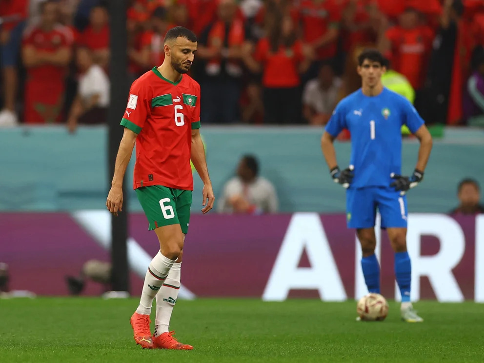 Romain Saïss, defensor y capitán de Marruecos, se retiró lesionado de la cancha de juego del Estadio Al Bayt. En su lugar ingresó Selim Amallah.