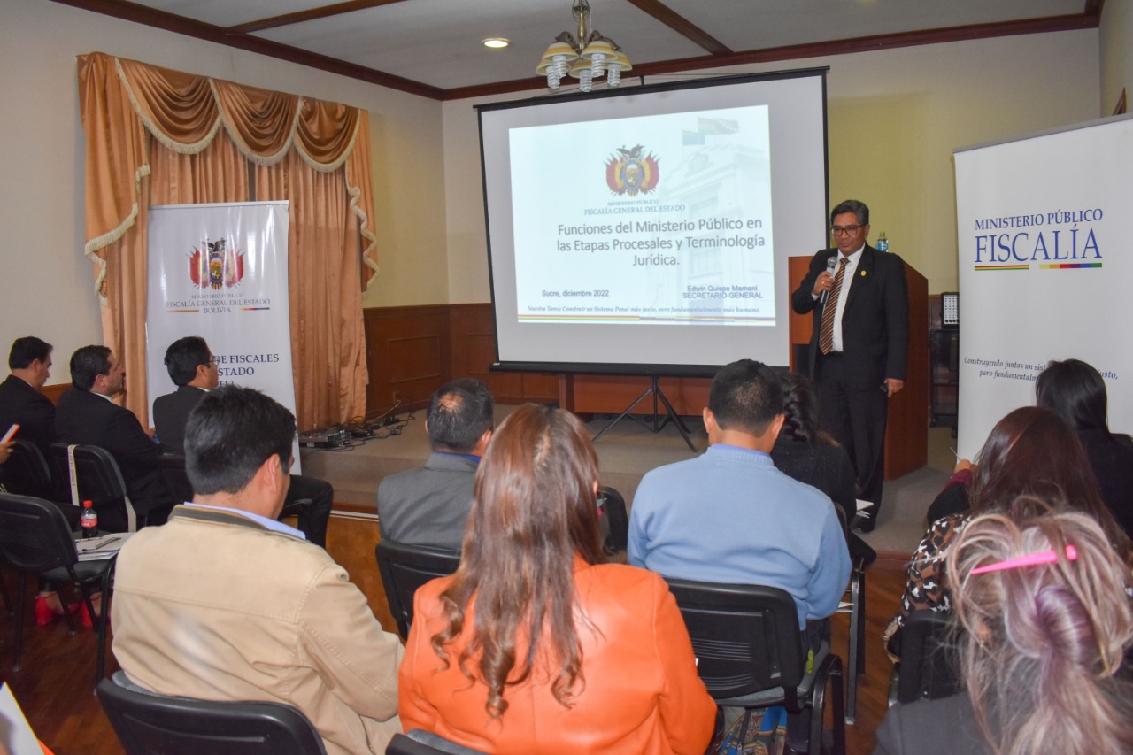 La Fiscalía General del Estado, en coordinación con la Escuela de Fiscales del Estado y la Federación de la Prensa de Chuquisaca, desarrolla el Taller de “Periodismo Jurídico Penal”, dirigido a periodistas de Sucre que realizan la cobertura en el área penal, con el objetivo que se interioricen en el funcionamiento del Ministerio Público.