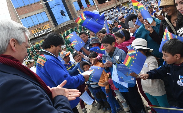 La Paz, 10 de marzo (Urgentebo).- Tras haber liderado una histórica concentración humana a favor de la demanda marítima, el presidente de Bolivia, Evo Morales, llegará la noche de este sábado a Santiago, para presenciar la asunción de Sebastián Piñera a la Presidencia de Chile, y a quien le propuso, en un discurso de hoy, generar “un nuevo tiempo de soluciones compartidas de buena fe”.
