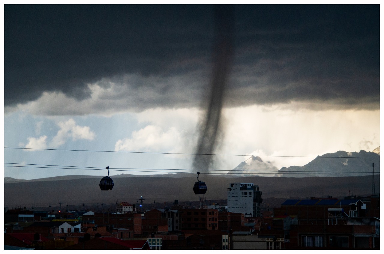 “Es un mini tornado que se ha generado en la ciudad de El Alto, no es de relevancia, pero si hay que tener visión a este tipo de eventos. Es por la diferencia de temperaturas, porque son dos masas de temperaturas que chocan y eso genera una nubosidad de este tipo, nubosidad de desarrollo vertical genera este tipo de eventos”, indicó Mamani.