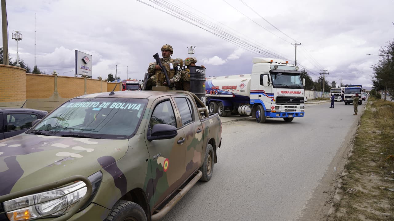 7 de marzo (Urgente.bo).- Desde las plantas de almacenaje de Senkata y Palmasola, Yacimientos Petrolíferos Fiscales Bolivianos (YPFB) intensifica los despachos de gasolina aditivada en convoyes de camiones cisterna resguardados por efectivos militares. Para este viernes YPFB programó un volumen de 5 millones de litros que se comercializarán a las estaciones de servicio de los departamentos de La Paz y Santa Cruz.