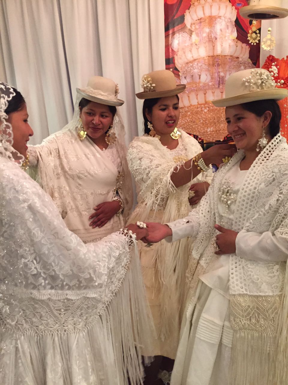 Los trajes son creaciones de las diseñadoras Ana Palza y Sandra Patzi, quienes realizaron un trabajo de investigación sobre la vestimenta de la novia de las décadas de los 50 a 70.